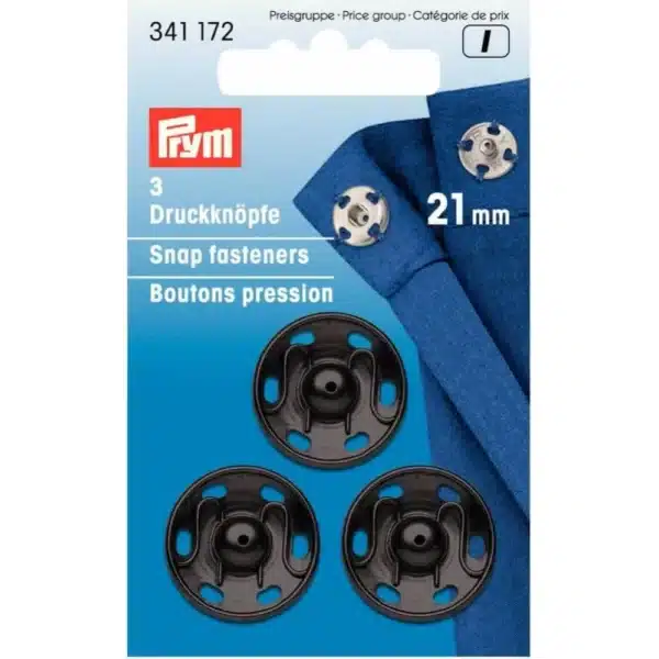 Prym Aannaaidrukknoop messing 21mm zwart – 3stuks